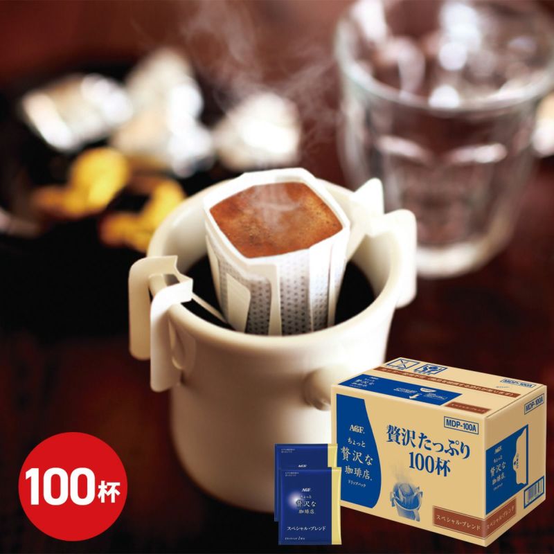 厳選したコーヒー豆を丁寧に焙煎し、深いコクと芳醇な香りが織り成す、濃厚な味わいに仕上げた「ちょっと贅沢な珈琲店?」ドリップパックのお徳用100杯入りです。