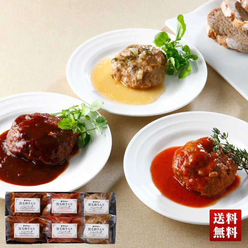 黒毛和牛と豚肉と鶏肉の合いびき肉を使用。デミグラスソース・トマトソース・和風ソースでお楽しみいただく3種類のハンバーグ食べ比べセットです。湯せんで簡単にお召しあがりいただけます。
