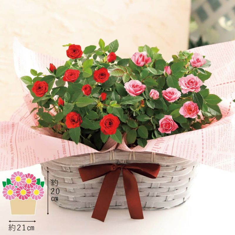 ミニバラ 寄せカゴ赤桃