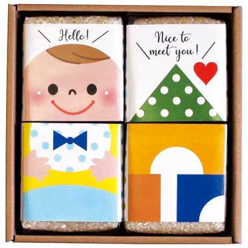 出産内祝いのお名入れギフトです。お米は新潟県産こしひかり無洗米を使用。お米の博士号五つ星マイスターが厳選したお米です。