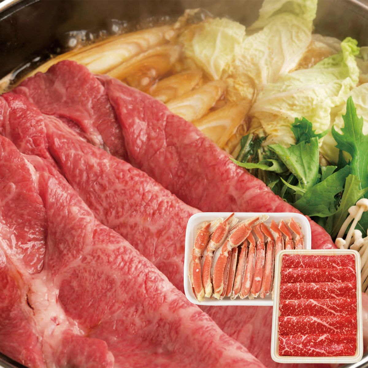 ボイルずわい蟹と北海道産 黒毛和牛すき焼き用