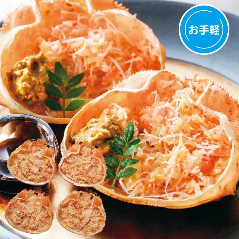【お手軽】繊細な旨みが特長のオオズワイ蟹を蟹味噌とともに甲羅へ盛付け。かに本来の美味しさを手軽に楽しめます。